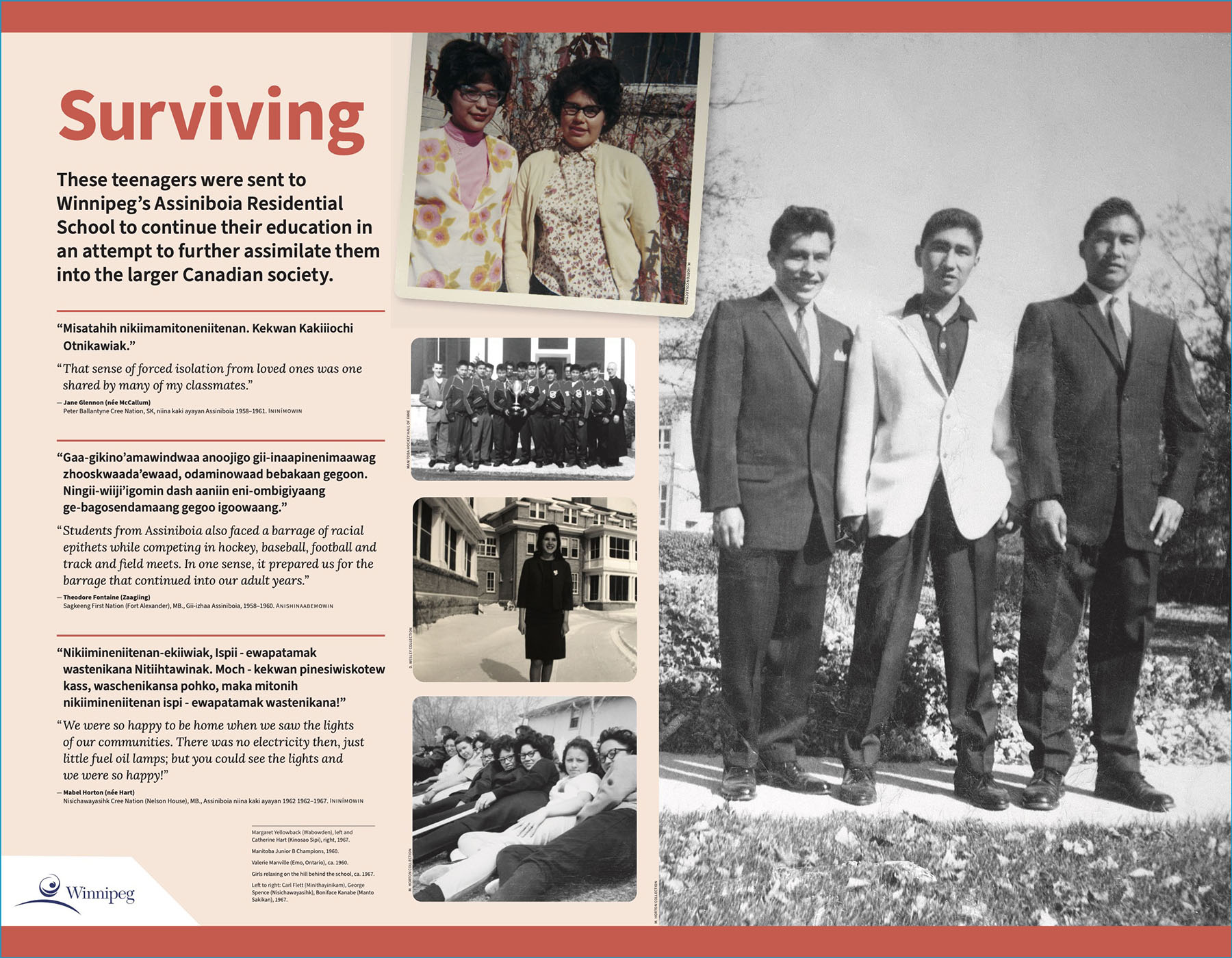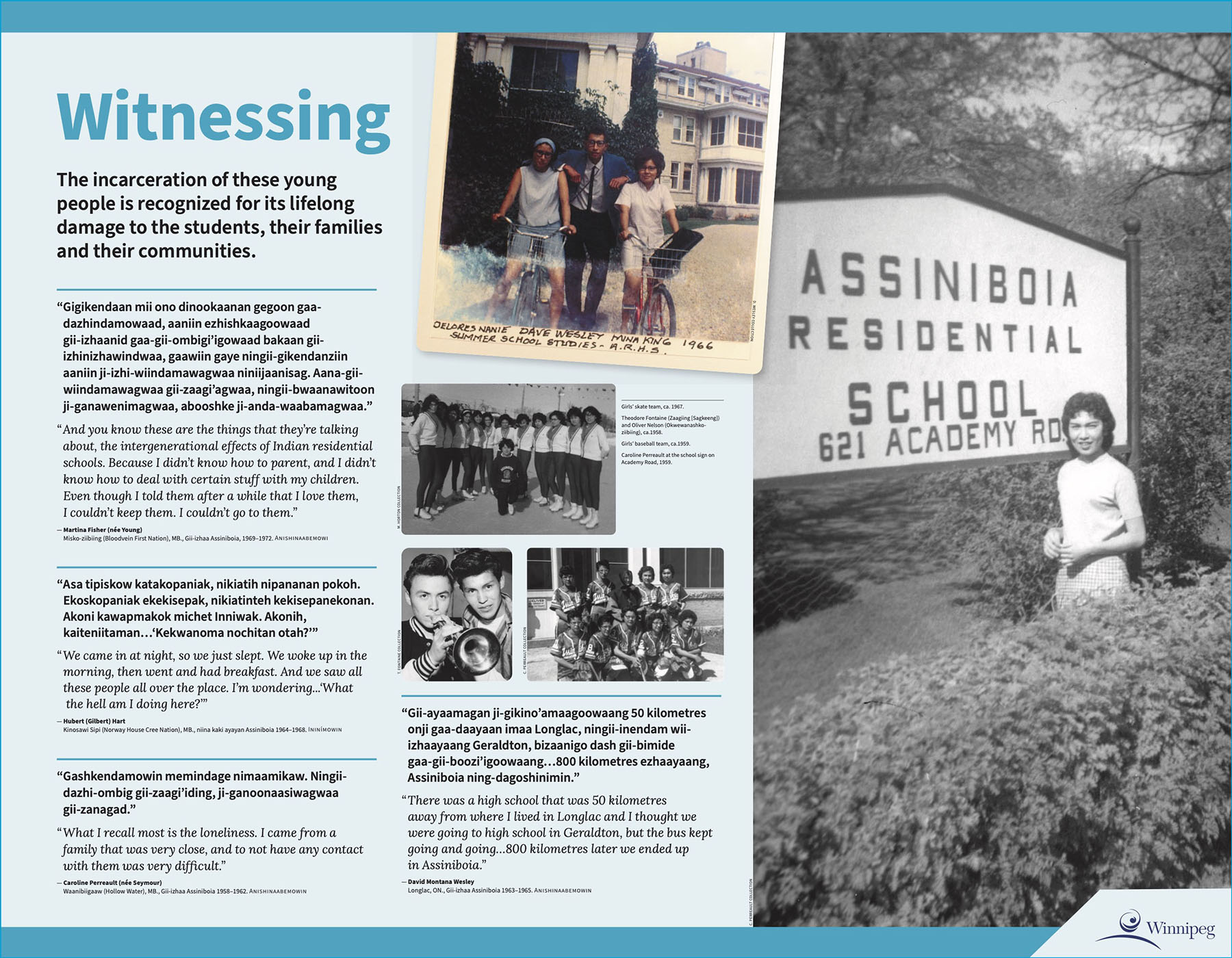 The font used throughout the Monument is called Assiniboia. The letter forms were derived from and inspired by the handwriting of Survivor David Montana Wesley. As a student, he explored his interest in photography and often made handwritten notes on the backs of his photo prints. From those notes, this same font now appears again in the blocks bearing the names of the students and the markers bearing the names of their home communities.